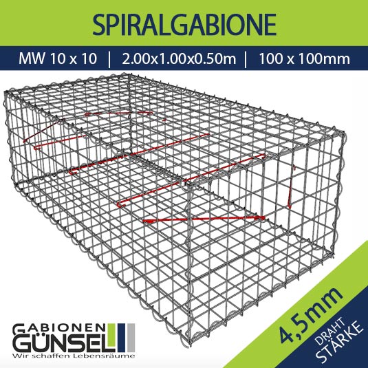 Drahtgitterbehälter Typ Spirale Draht 4,5mm Mw 10 x 10 cm Distanzhalter 5,0mm Spiralen 4,5 Salzsprühnebeltest 6000h
