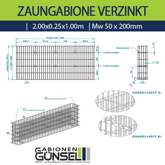 Zaungabione Verzinkt 2,00 x 0,25 x 1,40